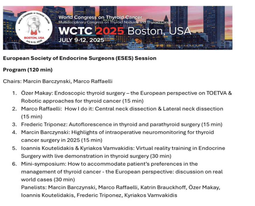 15:45 – 16:00 The Impact of Intraoperative Neuromonitoring on Postoperative Hypoparathyroidism in Patients Undergoing Total Thyroidectomy: A Retrospective Cohort Study. A. Sezer